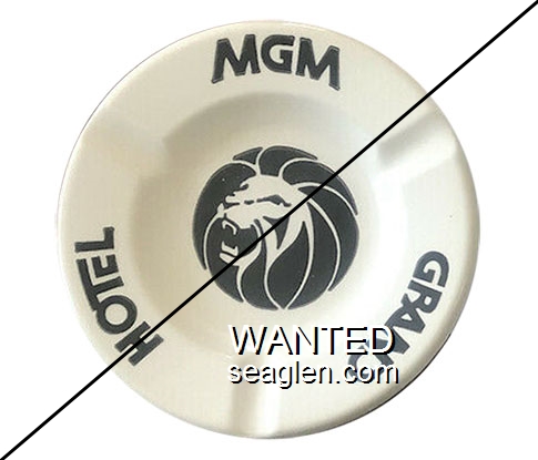 MGM-K2 MGM Grand Hotel (Las Vegas) ?" White Porcelain Ashtray "MGM Grand Hotel" - Black |