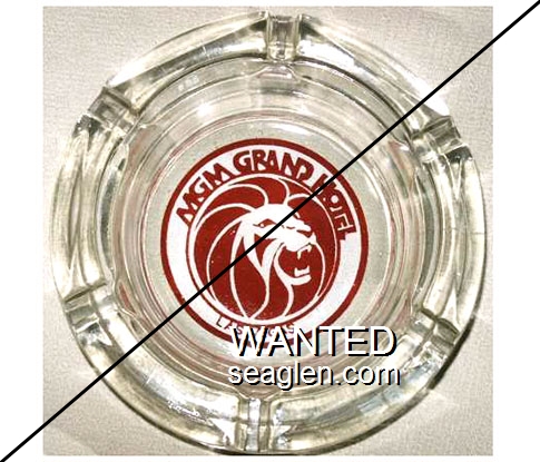 MGM-L1 MGM Grand Hotel (Las Vegas) 4 1/2" Clear Glass Ashtray "MGM Grand Hotel, Las Vegas" - Red on white |