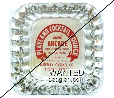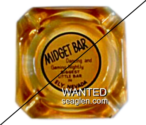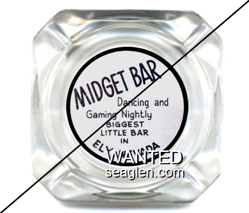 MID-01 Midget Bar 3 1/2" Clear Glass Ashtray "Midget Bar, Dancing and Gaming Nightly, Biggest Little Bar in Ely, Nevada" - Black on white |