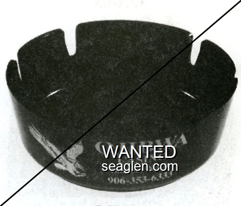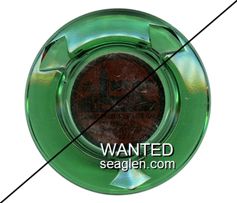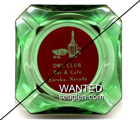 OWL-A2 Owl Club 3 1/2" Green Glass Ashtray "Owl Club, Bar & Cafe, Eureka, Nevada" - White on red |