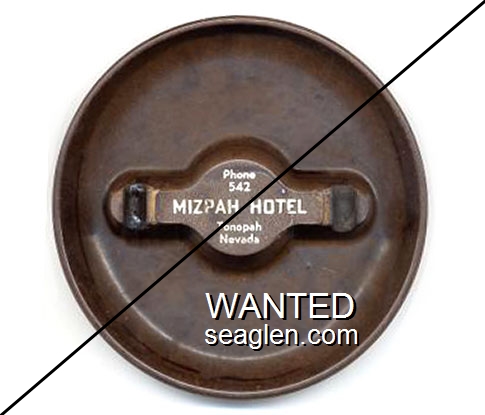 MIZ-E1 Mizpah Hotel and Mizpah Club ?" Brown Bakelite Ashtray "Phone 542, Mizpah Motel, Tonopah, Nevada" - White |