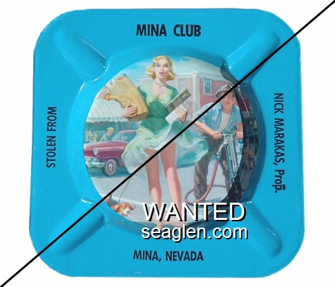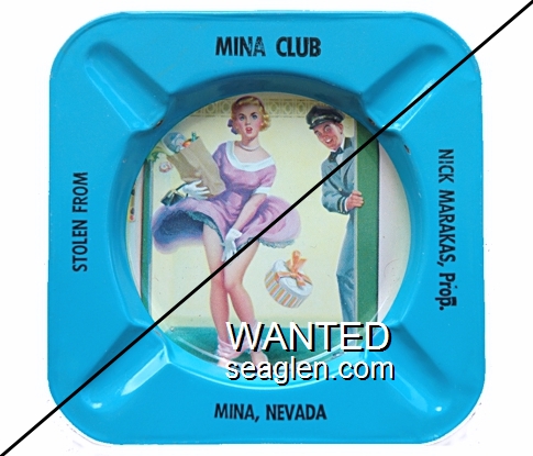 MNA-A3 Mina Club 4 1/8" Blue Metal Ashtray "Stolen From, Mina Club, Nick Marakas, Prop., Mina Nevada" - Black |