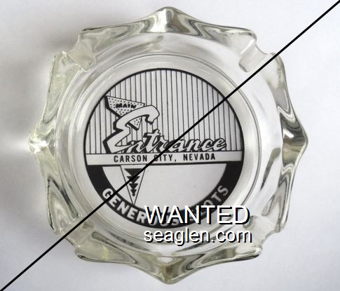 MNE-A1 Main Entrance 3 3/4" Clear Glass Ashtray "Main Entrance Carson City, Nevada, Generous Slots" - Black |