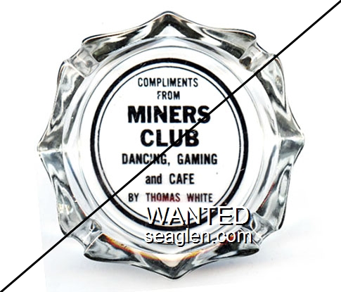 MNR-A1 Miner's Club 3 1/4" Clear Glass Ashtray "Compliments From Miners Club, Dancing, Gaming and Cafe, By Thomas White" - Black |