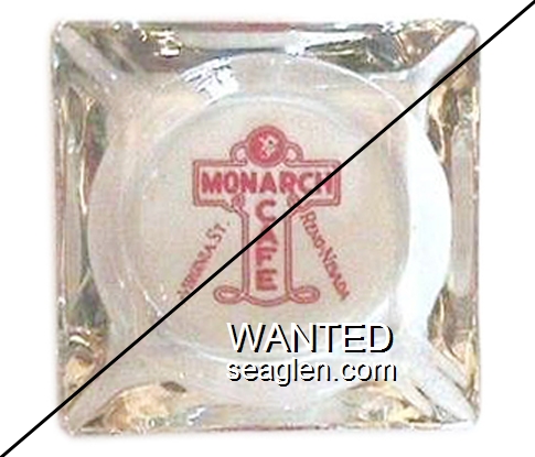 MON-A1 Monarch Cafe 3 1/4" Clear Glass Ashtray "Monarch Cafe, Reno - Nevada, Virginia St." - Red |