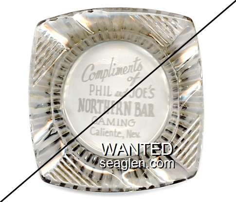 NBC-A1 Northern Bar ?" Clear Glass Ashtray "Compliments of Phil and Joe's Northern Bar, Gaming, Caliente, Nev." - White |