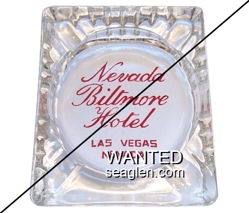 NBH-A1 Nevada Biltmore Hotel 3 1/2" Clear Glass Ashtray "Nevada Biltmore Hotel, Las Vegas, Nevada" - Red |