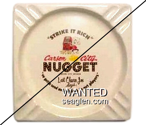 NCC-K1 Nugget (Carson City) ?" White Porcelain Ashtray "''Strike It Rich'', Carson City Nugget, Carson City, Nevada, Last Chance Joe Says: ''you gotta send out winners to get players''" - Black and red |