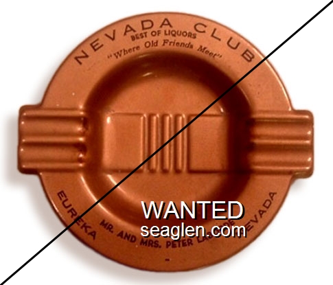 NCE-A1 Nevada Club (Eureka) 4 1/4" Copper Metal Ashtray "Nevada Club, Best of Liquors, ''Where Old Friends Meet'', Mr. and Mrs. Peter Laborde, Eureka Nevada" - Black |