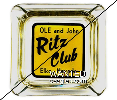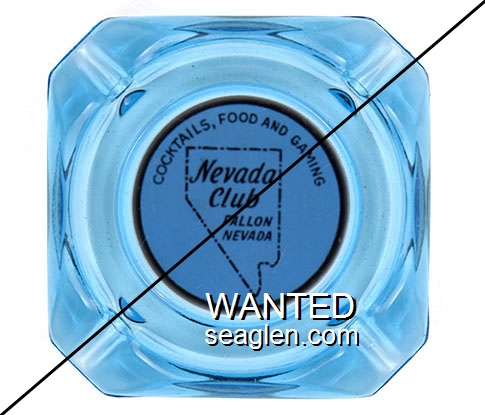 NCF-A1 Nevada Club (Fallon) 3 1/2" Blue Glass Ashtray "Cocktails, Food and Gaming, Nevada Club, Fallon Nevada" - Black on white |