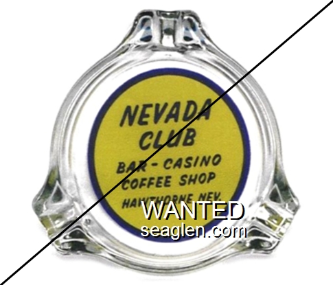NCH-A1 Nevada Club (Hawthorne) 3 1/4" Clear Glass Ashtray "Nevada Club, Bar - Casino, Coffee Shop, Hawthorne, Nev." - Blue on yellow |