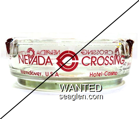 NCX-A2 Nevada Crossing 3 1/2" Clear Glass Ashtray "Nevada Crossing, Wendover, U.S.A., Hotel - Casino" - Red |
