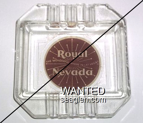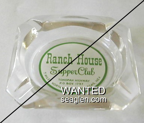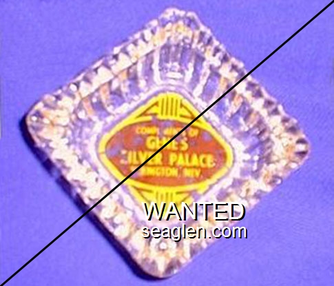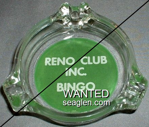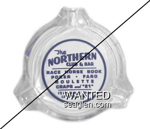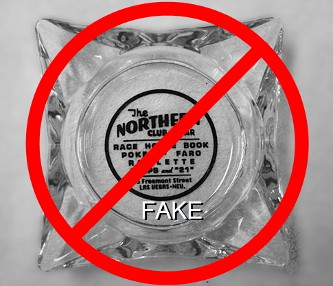 NOR-91 Northern Club 3 1/2" Clear Glass Ashtray "Northern Club & Bar, Race Horse Book, Poker - Faro, Roulette, Craps and ''21'', 15 Fremont Street, Las Vegas - Nev." - Black silkscreen (A silk screened fake, sold on eBay by seller greencOkecollector) |