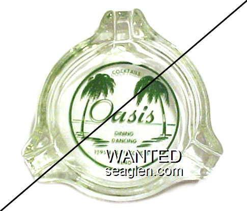 OAB-A1 Oasis Bar 3 1/2" Clear Glass Ashtray "Cocktails, Oasis, Dining, Dancing, 1295 East Second St., Reno" - Green |