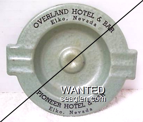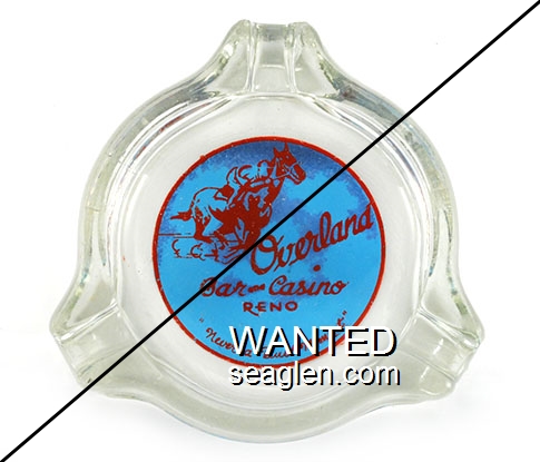 OVB-C1 Overland Bar 3 1/2" Clear Glass Ashtray "Overland Bar and Casino, Reno, ''Never a Dull Moment''" - Red on blue |