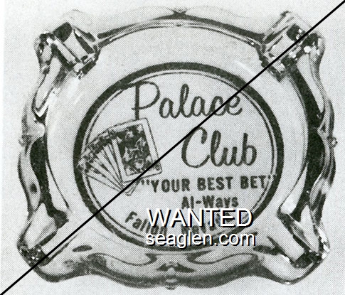 PAC-20 Palace Club (Fallon) 3 7/16" Clear Glass Ashtray "Palace Club, Always ''Your Best Bet'' All Ways, Fallon, Nevada" - Red on white |