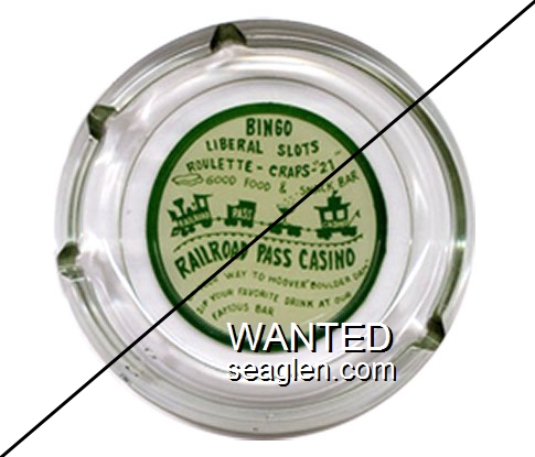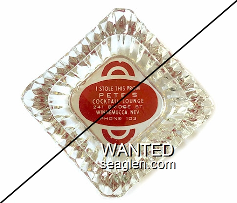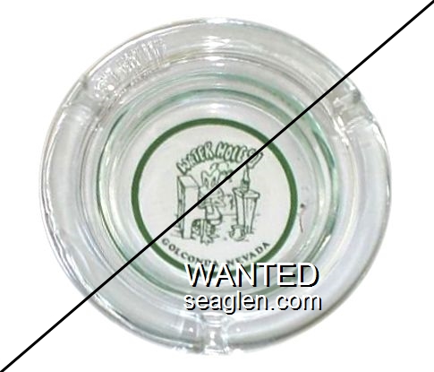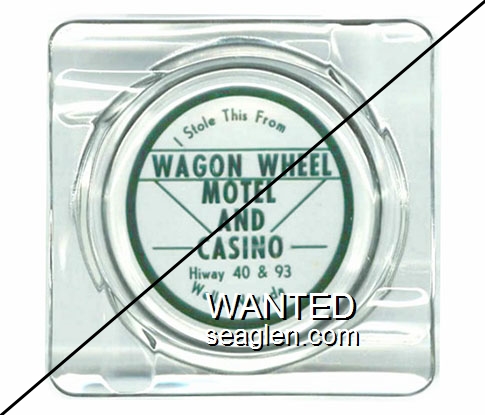 WWC-C1 Wagon Wheel Motel-Casino 4 1/4" Clear Glass Ashtray "I Stole This From Wagon Wheel Motel and Casino, Hiway 40 & 93, Wells, Nevada" - Green on white |
