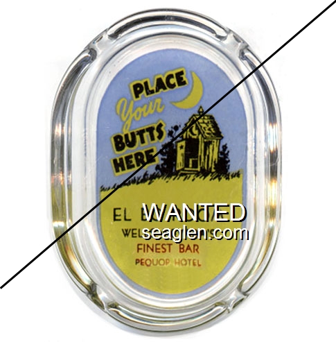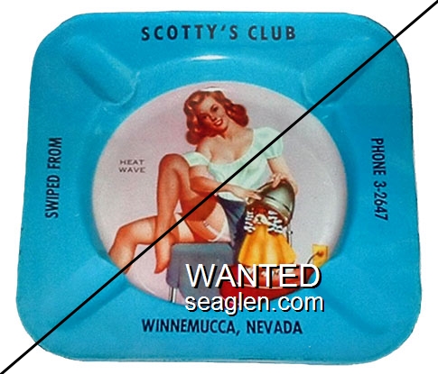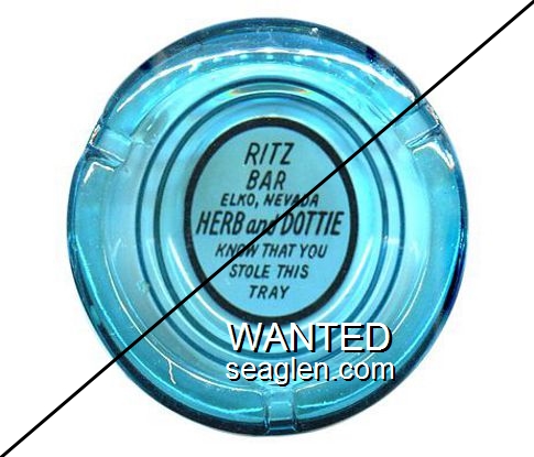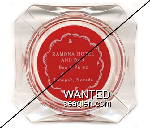 OWL-B2 Owl Club 3 1/2" Blue Glass Ashtray "Owl Club, Bar & Cafe, Eureka, Nevada" - White on red |
