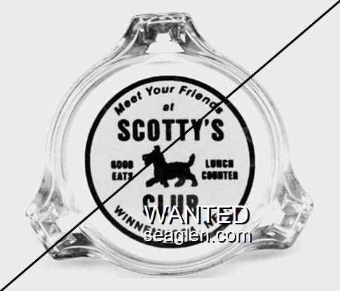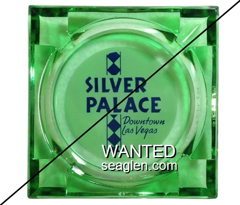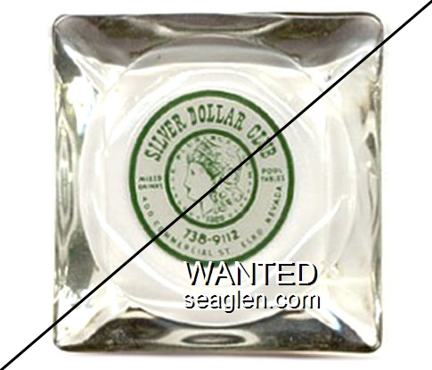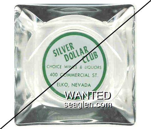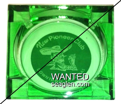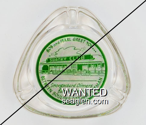 SWK-A1 Swanky Club 3 1/2" Clear Glass Ashtray "Bob and Pearl Greet You ..., Swanky Club, Smorgasbord Dinners, Bar and Casino, Between Boulder City and Pittman" - Green on white |