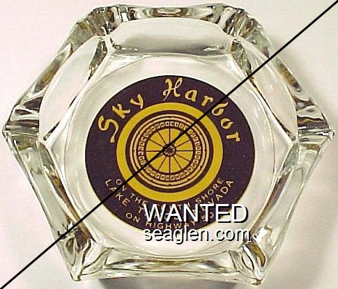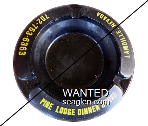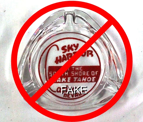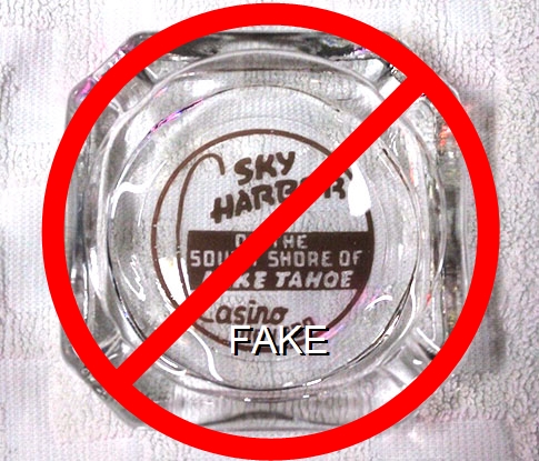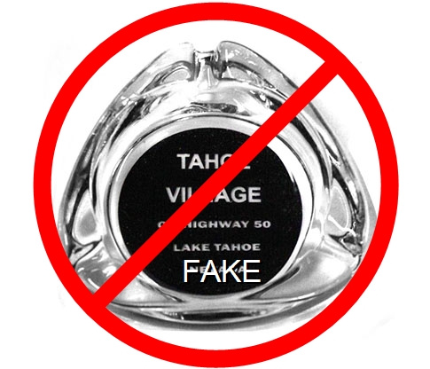 TAV-91 Tahoe Village 3 1/2" Clear Glass Ashtray "Tahoe Village, On Highway 50, Lake Tahoe, Nevada" - Clear thru black (A silk screened fake, sold on eBay by seller greencOkecollector) |