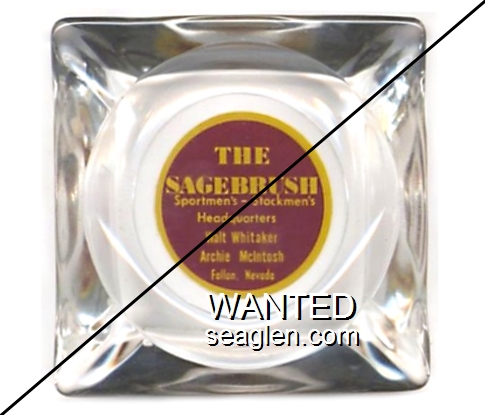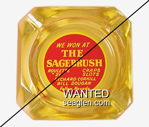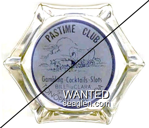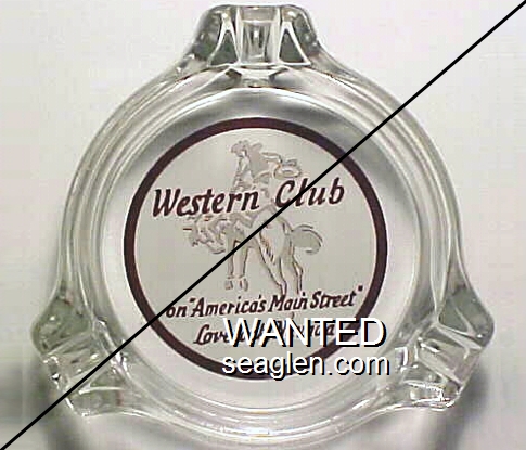 WES-20 Western Club 3 3/8" Clear Glass Ashtray "Western Club, on ''America's Main Street'' Lovelock, Nevada" - Brown on white |