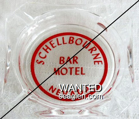SLH-G1 State Line Hotel & Casino 4" Clear Glass Ashtray "East Line, Nevada P.O., State Line Hotel, Cafe - Casino, Wendover, Utah" - White on red |