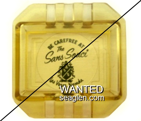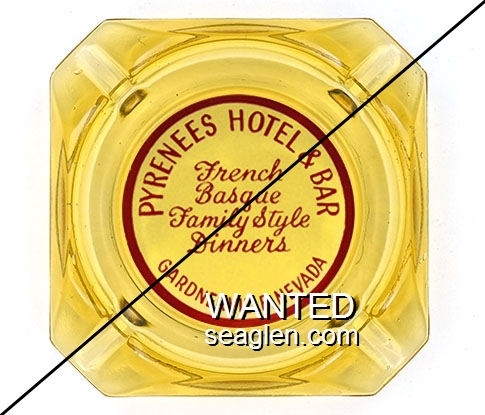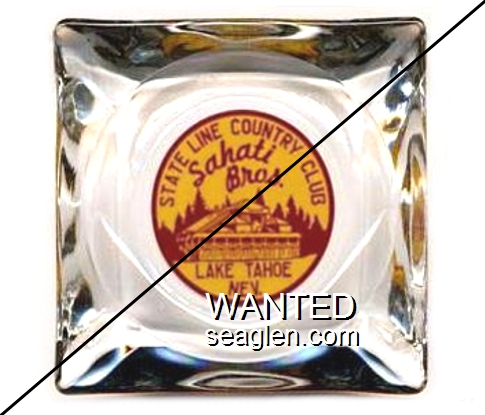 SCC-N1 Stateline Country Club 3 1/2" Clear Glass Ashtray "State Line Country Club, Sahati Bros., Lake Tahoe Nev." - Red on yellow |
