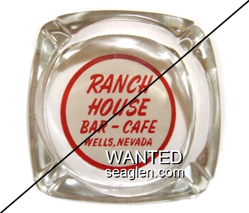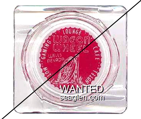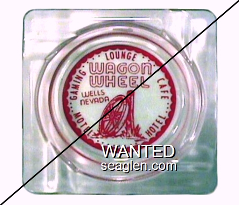 WWC-B2 Wagon Wheel Motel-Casino 4 1/4" Clear Glass Ashtray "Wagon Wheel, Wells Nevada, Gaming Lounge Cafe, Motel Hotel" - White on red |