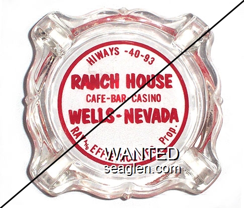 WWC-B3 Wagon Wheel Motel-Casino 4 1/4" Clear Glass Ashtray "Wagon Wheel, Wells Nevada, Gaming Lounge Cafe, Motel Hotel" - Red on white |