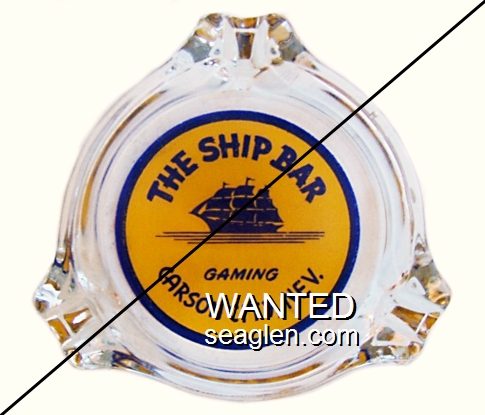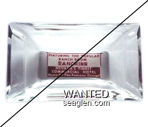 NSC-91 North Shore Club Hotel 3 1/2" Clear Glass Ashtray "Lake Tahoe, NSC, Crystal Bay, Nev." - Blue (A silk screened fake, sold on eBay by seller greencOkecollector) |