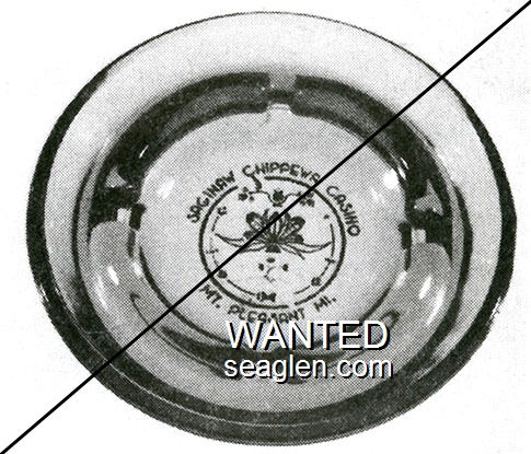 OJI-01 Ojibwa Casino 4 3/16" Black Bakelite Ashtray "Ojibwa Casino, Baraga, Mich. 906-353-6333" - White |