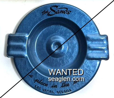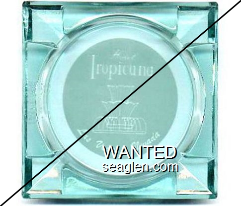 TRO-R1 Tropicana Hotel & Country Club 3 1/2" Blue Glass Ashtray "Hotel Tropicana, Las Vegas, Nevada" - Clear thru white |