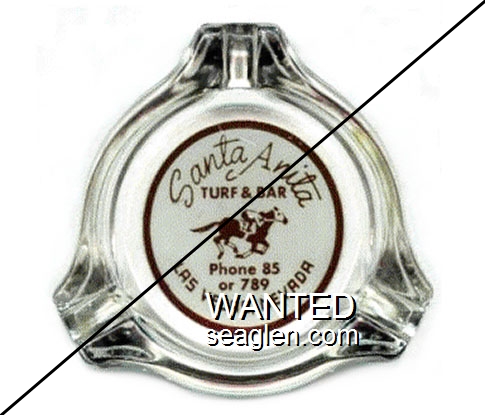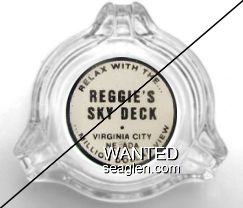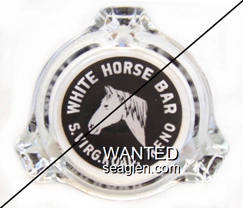WHB-A1 White Horse Bar 3 1/4" Clear Glass Ashtray "White Horse Bar, S. Virg. Road, Reno" - White on black |
