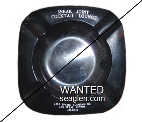 SJV-A1 Sneak Joint ?" Black Plastic Ashtray "Sneak Joint Cocktail Lounge, 2358 Spring Mountain Rd., Las Vegas, Nevada, 735-6331" - White |