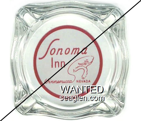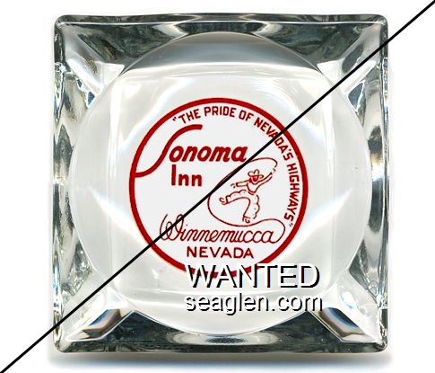 SOI-D3 Sonoma Inn 3 1/2" Clear Glass Ashtray "''The Pride of Nevada's Highways'', Sonoma Inn, Winnemucca Nevada" - Red on white |