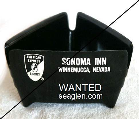 SOI-G1 Sonoma Inn ?" Black Plastic Ashtray "Sonoma Inn, Winnemucca, Nevada (American Express Logo)" - White |