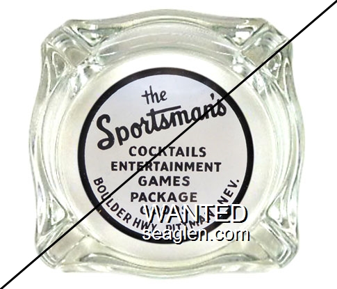 SPP-A1 Sportsman's Bar & Casino 3 7/16" Clear Glass Ashtray "the Sportsman's, Cocktails, Entertainment, Games, Package Goods, Boulder Hwy., Pittman, Nev." - Black on white |