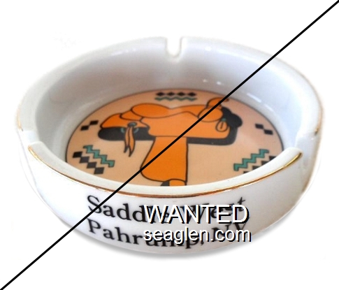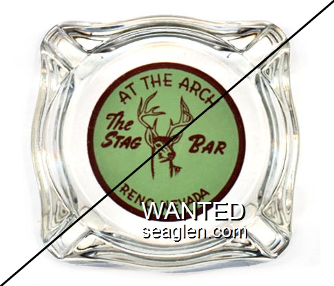 STG-B1 Stag Bar 3 7/16" Clear Glass Ashtray "At the Arch, The Stag Bar, Reno, Nevada" - Brown on green |