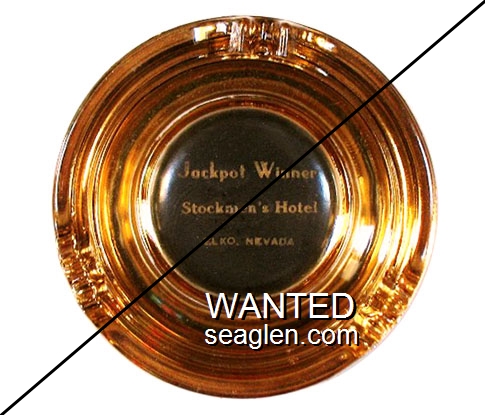 STO-E1 Stockmen's Hotel ?" Amber Glass Ashtray "Jackpot Winner, Stockmen's Hotel, Elko, Nevada" - White on black |