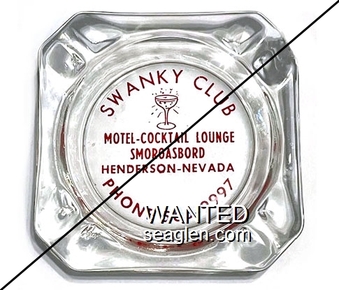SWK-C1 Swanky Club 3 1/2" Clear Glass Ashtray "Swanky Club, Motel - Cocktail Lounge, Smorgasbord, Henderson - Nevada, Phone 565-9997" - Red |