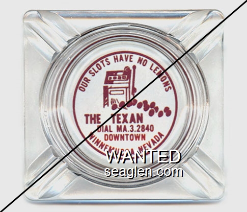 TEX-A1 Texan, The (Winnemucca) ?" Clear Glass Ashtray "Our Slots Have No Lemons. The Texan, Dial MA.3.2840, Downtown, Winnemucca, Nevada" - Red |