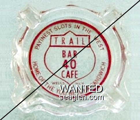 TFC-A2 Trail 40 Bar & Cafe 3 11/16" Clear Glass Ashtray "Payinest Slots in the West, Trail Bar 40 Cafe, Wells, Nev., Home of the You Betcha Sandwich" - Red |