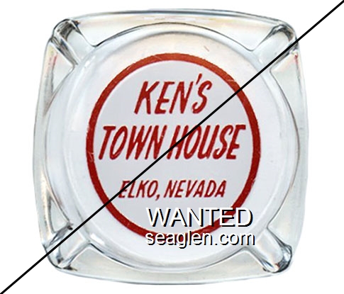 THE-A1 Town House, Elko 3 1/4" Clear Glass Ashtray "Ken's Town House, Elko, Nevada" - Red on white |