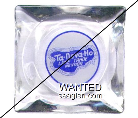 TNH-02 Ta-Neva-Ho 3 1/2" Clear Glass Ashtray "Ta-Neva-Ho Lake Tahoe, Nevada" - Blue on white |
