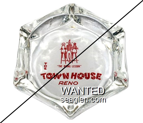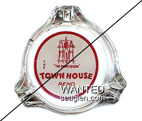 TOH-B2 Town House 3 1/4" Clear Glass Ashtray "''The Riding Lesson'', The Town House Reno" - Red on white |