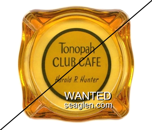 TON-04 Tonopah Club 3 7/16" Amber Glass Ashtray "Tonopah Club Cafe, Harold R. Hunter" - Blue on yellow |