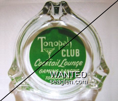 TON-E1 Tonopah Club 3 1/4" Clear Glass Ashtray "Tonopah Club, Cocktail Lounge, Gaming - Dancing, Tonopah, Nevada," - White on green |