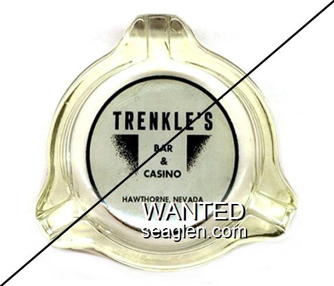 TRK-A1 Trenkle's 3 1/2" Clear Glass Ashtray "Trenkle's Bar & Casino, Hawthorne, Nevada" - Black on white |