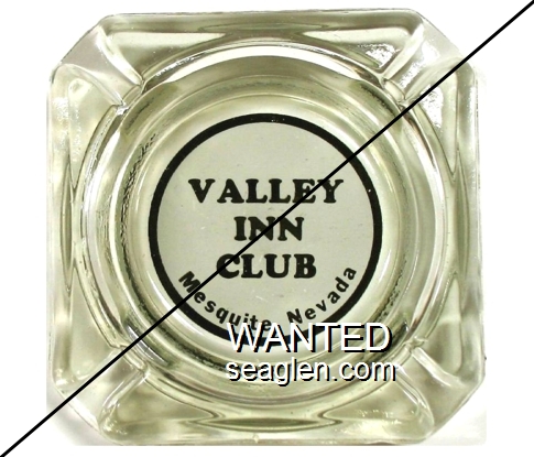 VAL-B1 Valley Inn Casino 3 1/2" Smoke Glass Ashtray "Valley Inn Club, Mesquite, Nevada" - Black on white |