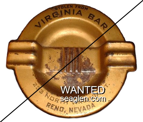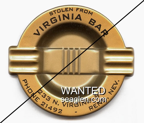 VRB-A1 Virginia Bar 4 7/8" Gold Metal Ashtray "Stolen From Virginia Bar, 233 North Virginia St., Reno, Nevada" - Black |